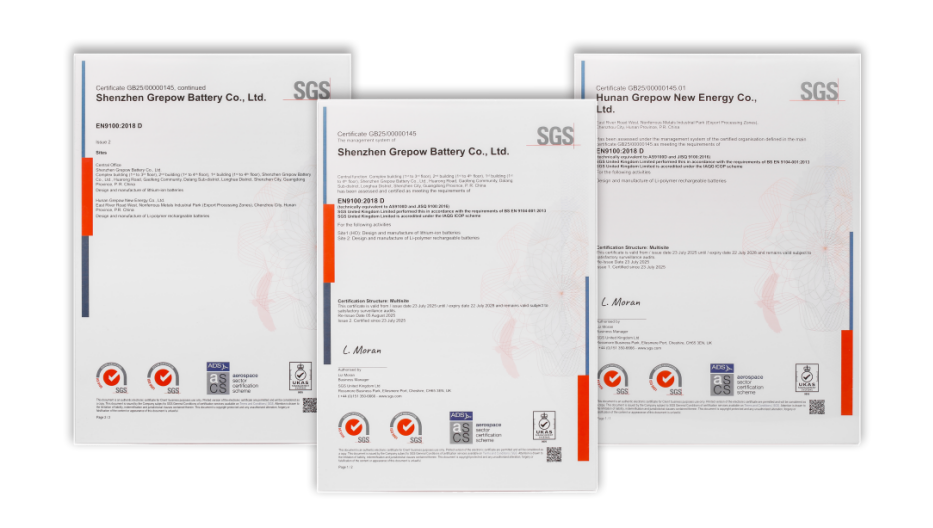 格瑞普電池榮獲 AS9100D 航空航天質(zhì)量管理體系認(rèn)證 質(zhì)量實力獲國際認(rèn)可,無人機電池板塊邁向高端市場